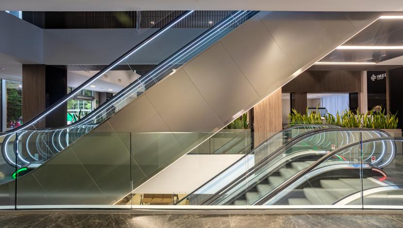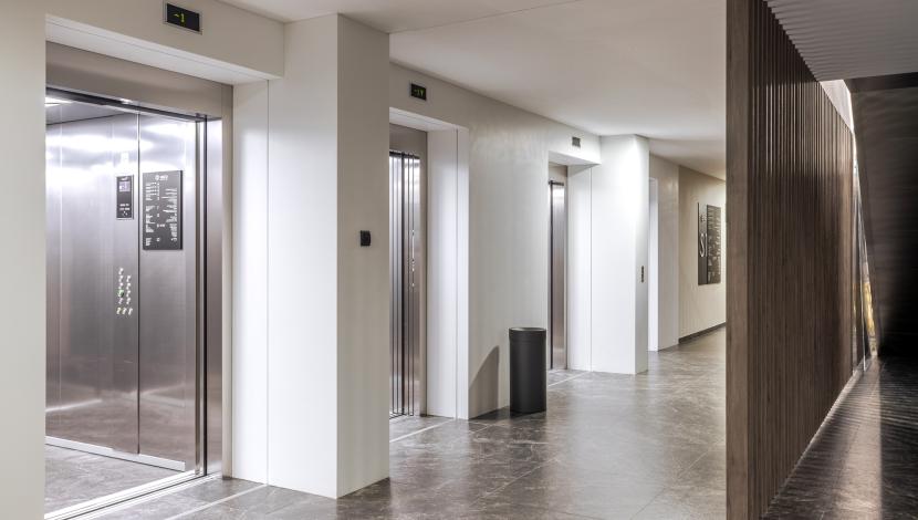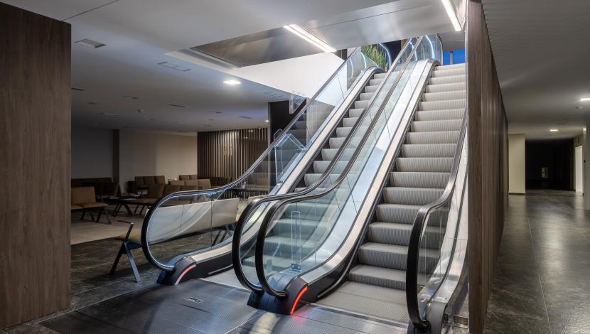 En este complejo, Orona ha instalado diferentes soluciones de movilidad adaptadas a cada etapa del edificio. Por un lado, el centro cuenta con ascensores de una fase anterior, entre ellos un ascensor panorámico en la zona de recepción y dos equipos destinados al uso de clientes. En el edificio más reciente, inaugurado en 2023, se incorporan cuatro ascensores situados en la entrada principal, junto a las escaleras mecánicas, que facilitan la distribución vertical y aseguran un flujo eficiente en las áreas de mayor afluencia.