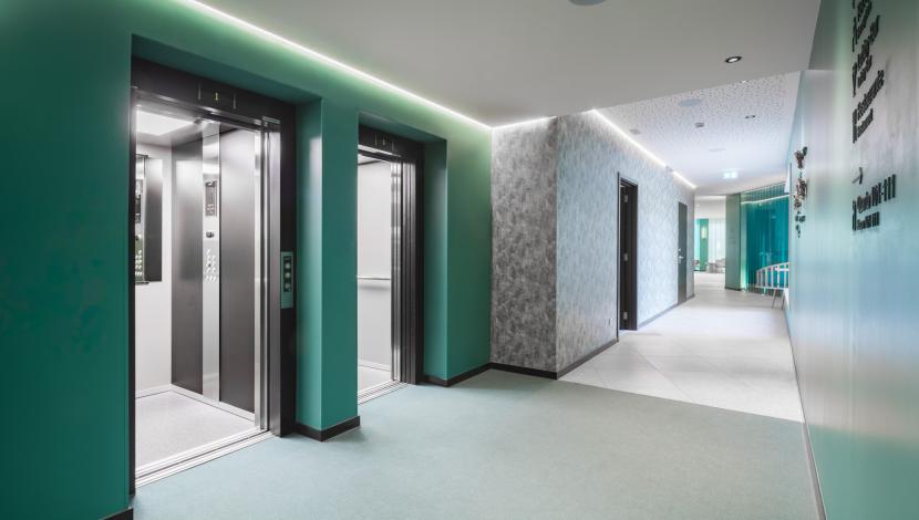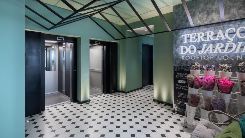 Os elevadores Orona integram-se neste ambiente com uma estética moderna e sóbria, reforçada por tons neutros e linhas limpas que acompanham a arquitetura interior. As cabinas, iluminadas com um design uniforme e confortável, transmitem sensação de amplitude e qualidade, garantindo uma experiência fluida aos hóspedes em cada deslocação vertical.